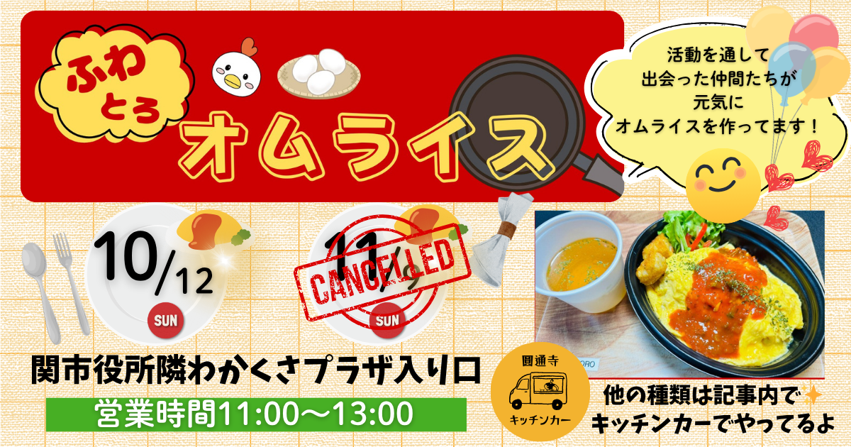 関市🍀10月12日(日)【ふわとろオムライス】圓通寺キッチンカー📍関市役所隣わかくさプラザ入口にて:営業時間11:00〜13:00