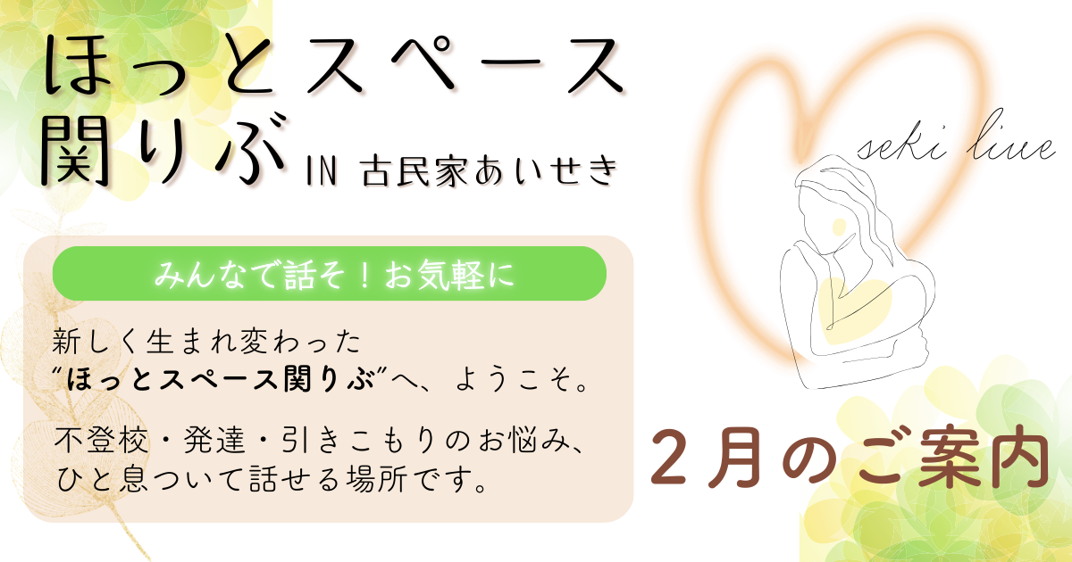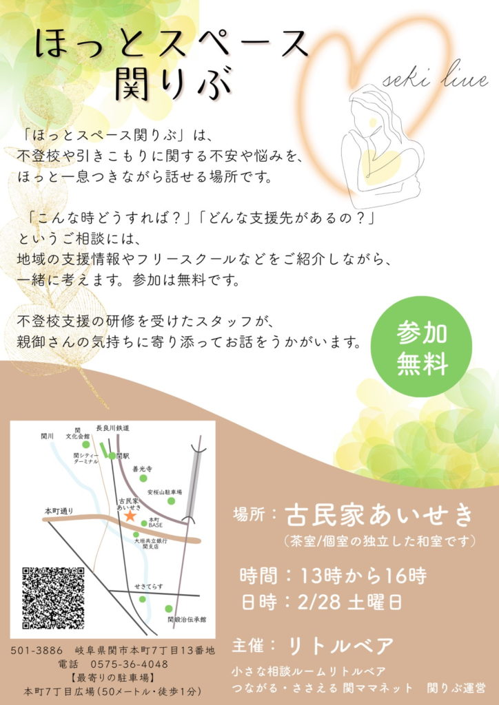 ☘️関市:2月28日 13:00 〜14:00 ほっとスペース関りぶ〜無料相談会〜【古民家あいせきにて】