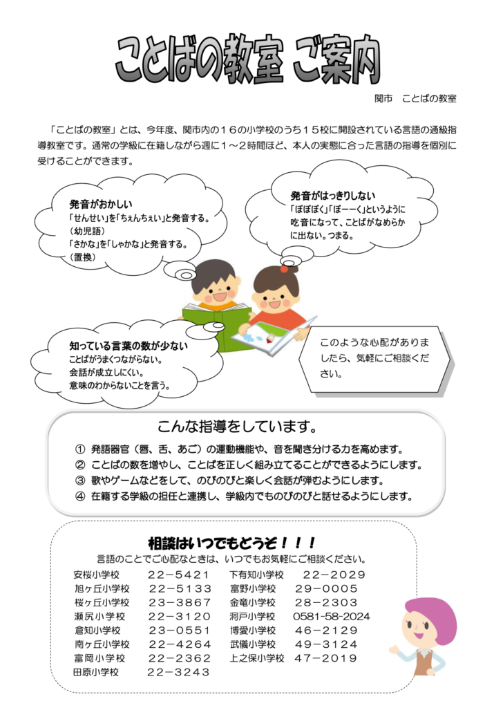 ☘️岐阜県関市:【2026・3月時点】🌈多様な子どもたち✨️を支える《公立学校内のサポートと支援の取り組み》ー通級指導教室(ことばの教室、LD・ADHD等)特別支援学級ー