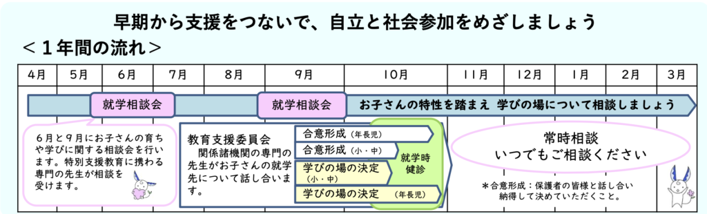 お子さまの状況はご家庭ごとに違いますが、まずは《就学相談会》という場でお話をしてみることで、