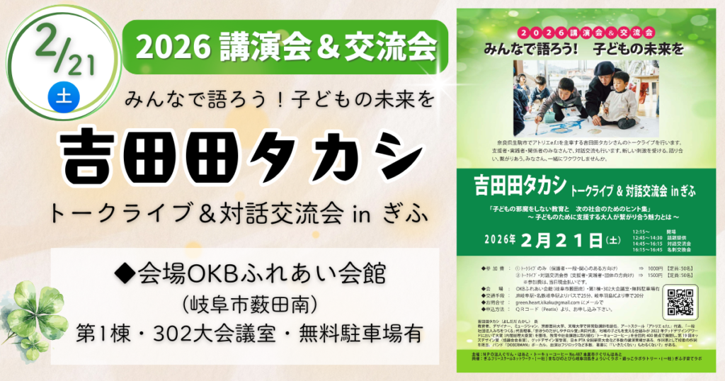 ☘️関市の公的なイベント情報: 1月 23日(金)午後1時00分~午後4時00分【その子らしさを活かして生きる道筋を考える〜元気と自信が増す子どもへの向き合い方のヒントを教えます!!〜】令和7年度 『まなびセンター 子育て保護者研修会③』